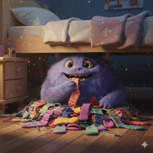 Y aquí viene mi teoría más reciente, teoría que da un giro tierno y a la vez totalmente lógico a todo este misterio. Los calcetines sueltos realmente no desaparecen en la lavadora … ¡Y el el monstruo que vive debajo de la cama (y que es absolutamente amistoso y para nada representa un peligro) quien se alimenta de ellos. Si, ya sé, suena a cuento infantil o a que se me ha ido la chaveta, pero piénsalo querido lector, es un monstruo hogareño, algo tímido, que no quiere asustarnos, sólo alimentarse.
