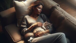 Y en ese momento lo sé, sé que debería levantarme, sé que esto no va a acabar bien y tomo conciencia de que he cometido un error. Lo miro, siento ese peso cálido encima de mi y mi cerebro me lanza sin piedad el primer pensamiento trampa “Pobrecito, míralo cómo está … tan cómodo, confía en mí, si es que no quiero despertarlo ahora … eso sería de ser mala persona” y con un suspiro de resignación añado para mi misma “Bueno, cinco minutos más, que total, tampoco cambian nada” (spoiler: Lo cambian todo). Así que, decido aprovechar esos cinco minutos para relajarme viendo un documental que acabo de descubrir. Pero la combinación del pacto que mi sueño y el sofá han firmado, la respiración pausada del gato dormido y el tono suave de la voz en off hace su magia. Lentamente me voy deslizando desde ver el documental a sólo escucharlo hasta que en algún momento … fundido a negro sin la menor resistencia por mi parte.